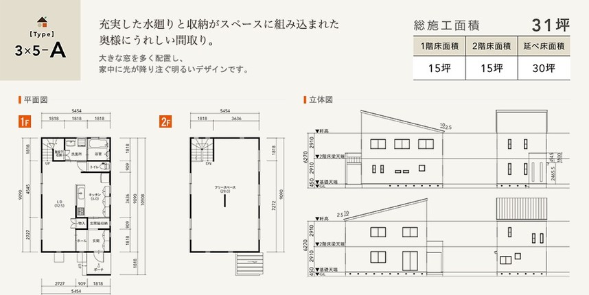 2階の基本仕様はフリースペース。家族構成やライフスタイル、将来を見越した自由なレイアウトが可能。まるで積み木のパーツを組み立てるように・・・あなた流の暮らしのカタチを作れる、夢が広がる、家づくりの1ページ。